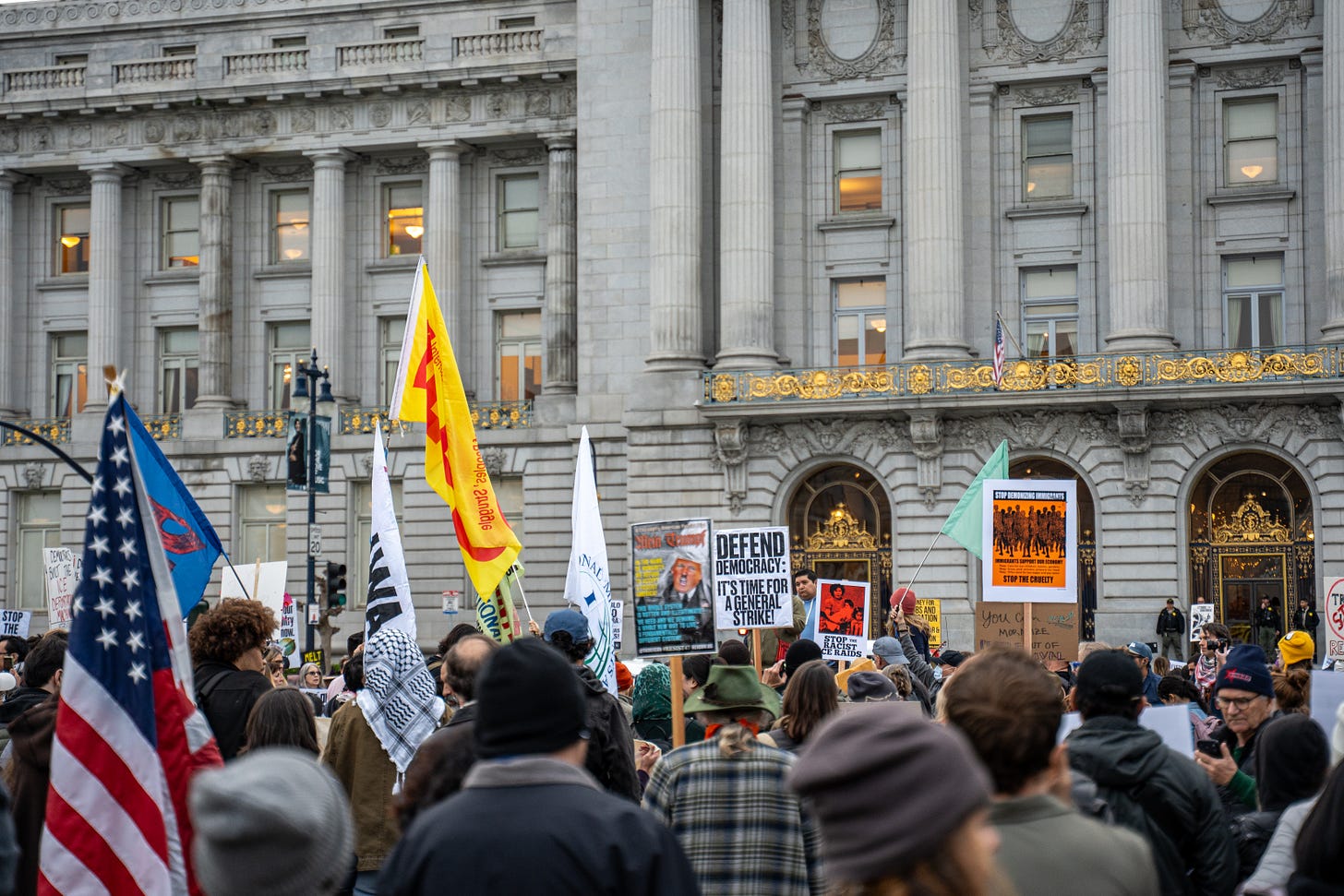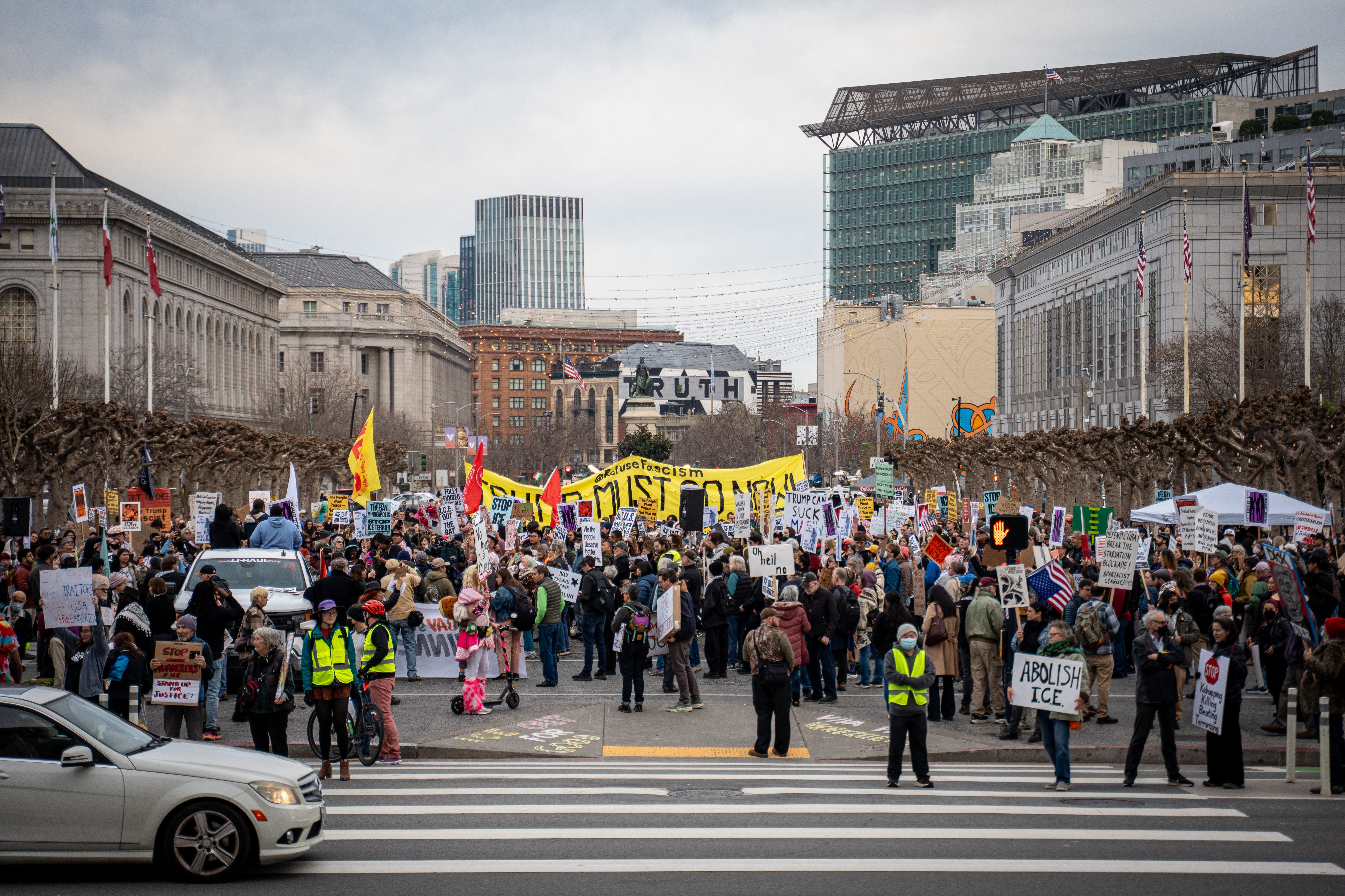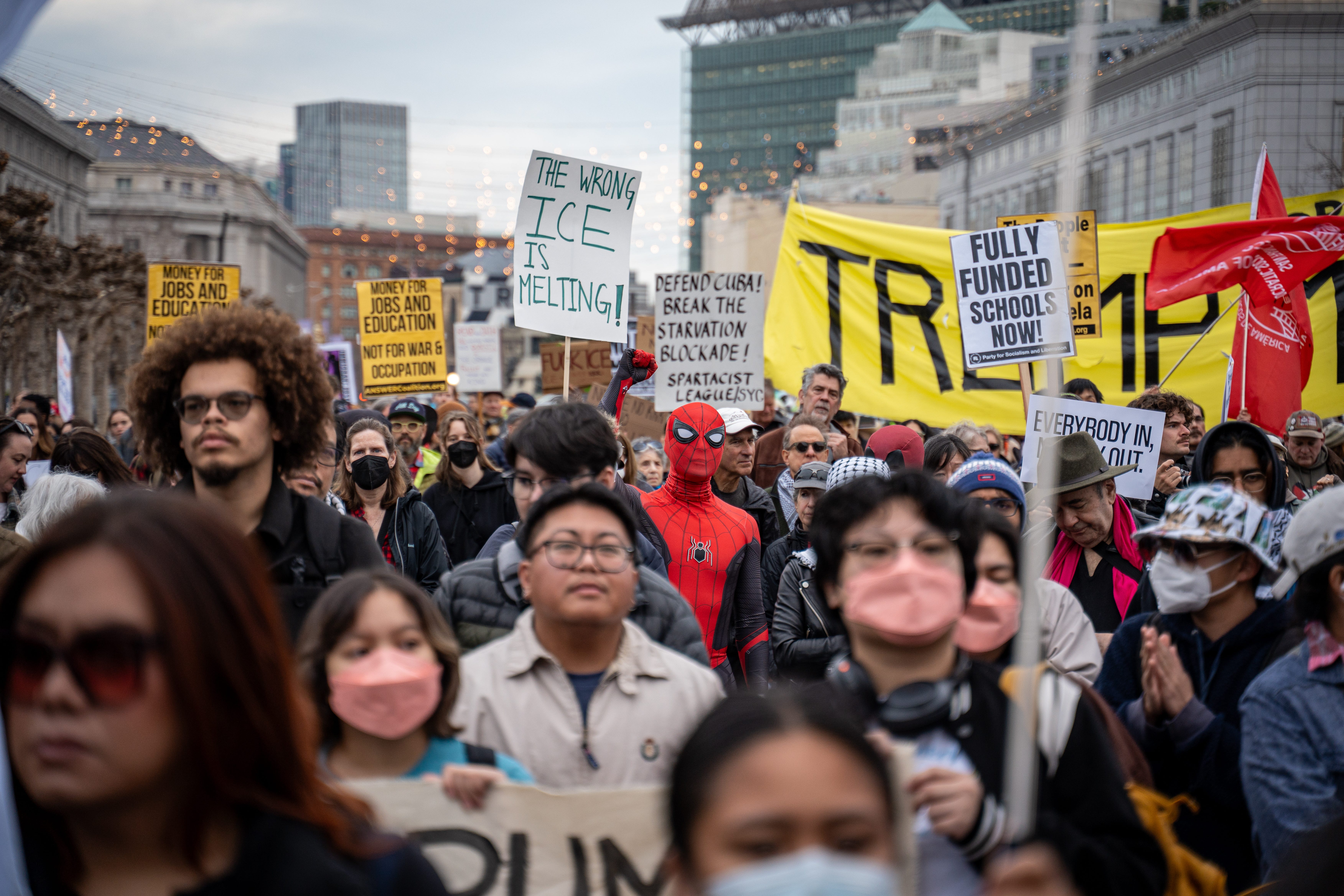 Photos taken on January 20 in San Francisco during the nationwide walkout responding to the Trump administration’s escalating ICE enforcement and the killing of Renee Good. Thousands joined the 'Free America' walkout, marching in solidarity with Minneapolis and communities across the country facing intensified raids.